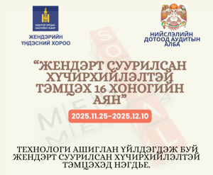“ЖЕНДЭРТ СУУРИЛСАН ХҮЧИРХИЙЛЭЛТЭЙ ТЭМЦЭХ 16 ХОНОГИЙН АЯН”-д Нийслэлийн Дотоод Аудитын албаны хамт олон нэгдэж байна.
